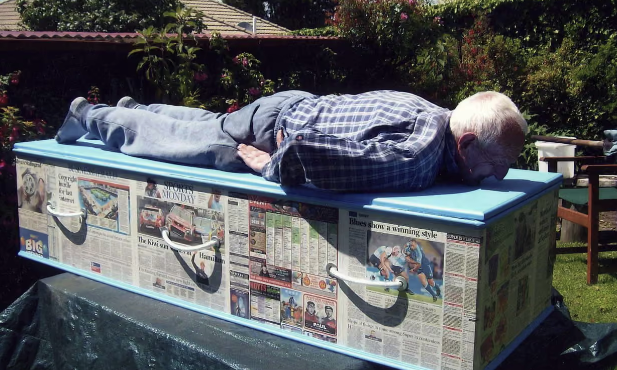 Assurément le moins avenant, mais de loin le plus déglingue : on s’y réunit, dans la joie et la bonne humeur, pour construire ensemble son propre cercueil. Initié en Nouvelle-Zélande, le mouvement des coffin clubs a depuis fait des émules : une manière de faire communauté autour de ce qui finalement nous lie tous et toutes, par-delà les origines et les niveaux de vie, la mort.