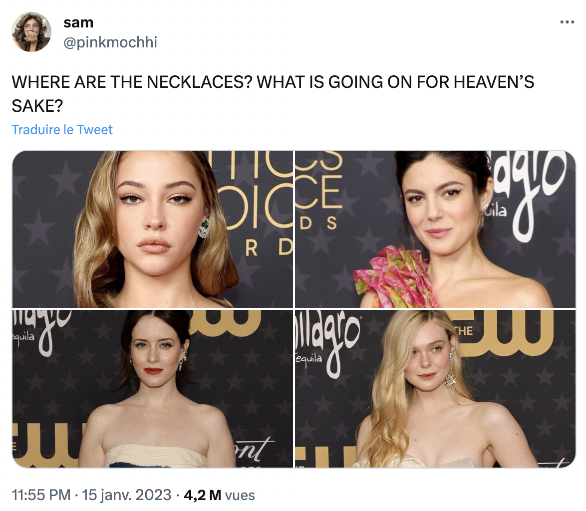 Bien sûr, une telle initiative peut sembler incongrue : à l’heure du dérèglement climatique et de l’inflation galopante qui obligera bientôt à casser son PEL pour s’offrir du pain multigraines, beaucoup attendent une forme de retenue, voire de sobriété. C’est d’ailleurs dans cette volonté de faire profil bas que serait née l’esthétique “Recession Core”, explorée dans cet article par le merveilleux magazine l’ADN. En bref : exit les rivières de diamants, place aux décolletés sans fioritures !