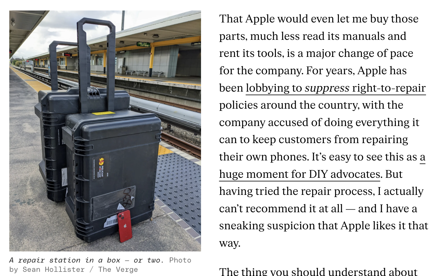 Un droit à la réparation qui semble une évidence dans un monde au bord du gouffre environnemental, mais qui ne va malheureusement pas de soi. J’en veux pour preuve le témoignage de cet utilisateur d’Apple, à qui la marque a envoyé une mallette de 35 kilos contenant les ustensiles nécessaires à la réparation de son écran (autant vous dire qu’à ce compte là, je préfère encore lâcher une somme exhorbitante dans un “reparphone” douteux de Montgallet).